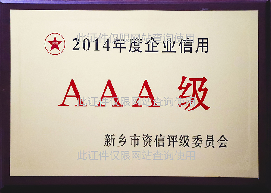 2014年度企業(yè)信用AAA級